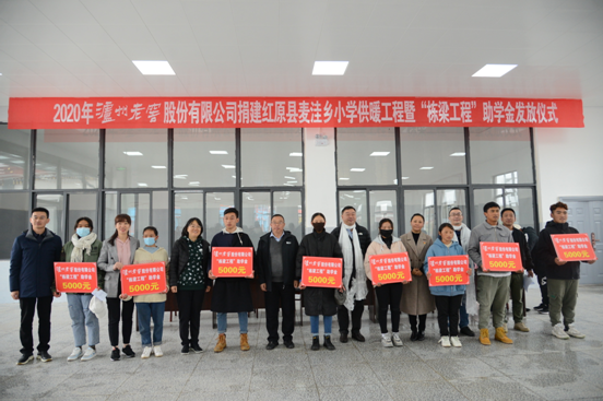 2020年9月24日,泸州老窖股份有限公司党委副书记、总经理林锋一行到红原县开展“2020年泸州老窖股份有限公司捐建红原县麦洼乡小学供暖工程暨‘栋梁工程’助学金发放仪式”,向红原县麦洼乡小学供暖工程捐建74.1万元,切实改善麦洼乡小学的办学条件,力争创造更优质教育学习环境,为教师们安心从教、学生们勤奋学习提供了坚实的基础保障。