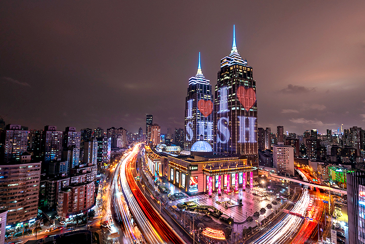 图为上海环球港夜景图