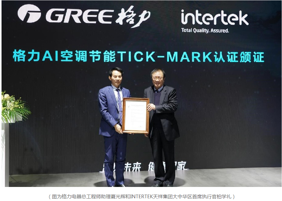 全球首张!格力AI节能空调获TICK-MARK证书