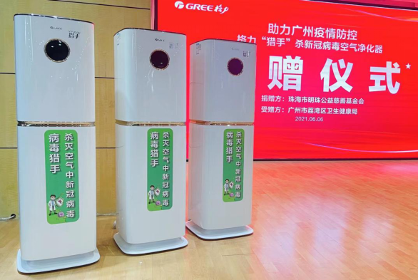 为助力广州疫情防控工作顺利开展,为医护人员和患者打造健康的空间环境,6月6日,珠海市明珠公益慈善基金会向广州市荔湾区卫生健康局、海珠区疾控中心捐赠了100台总价值超过120万的格力“猎手”系列空气净化器,以创新科技助力全面打赢防疫攻坚战。