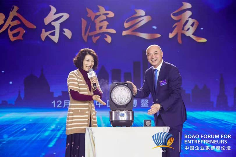 (图为董明珠在2020中国企业家博鳌论坛演示格力电饭煲)