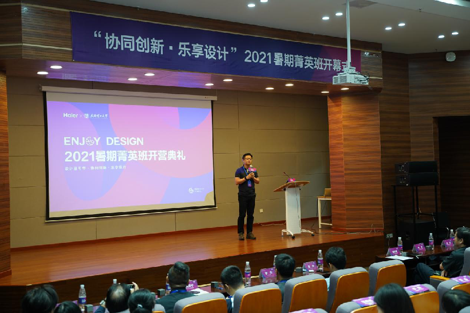 7月19日,由海尔创新设计中心与武汉理工大学联合打造的Haier Design DOMUS“2021暑期菁英班”开幕仪式,在武汉理工大学艺术与设计学院报告厅启动。