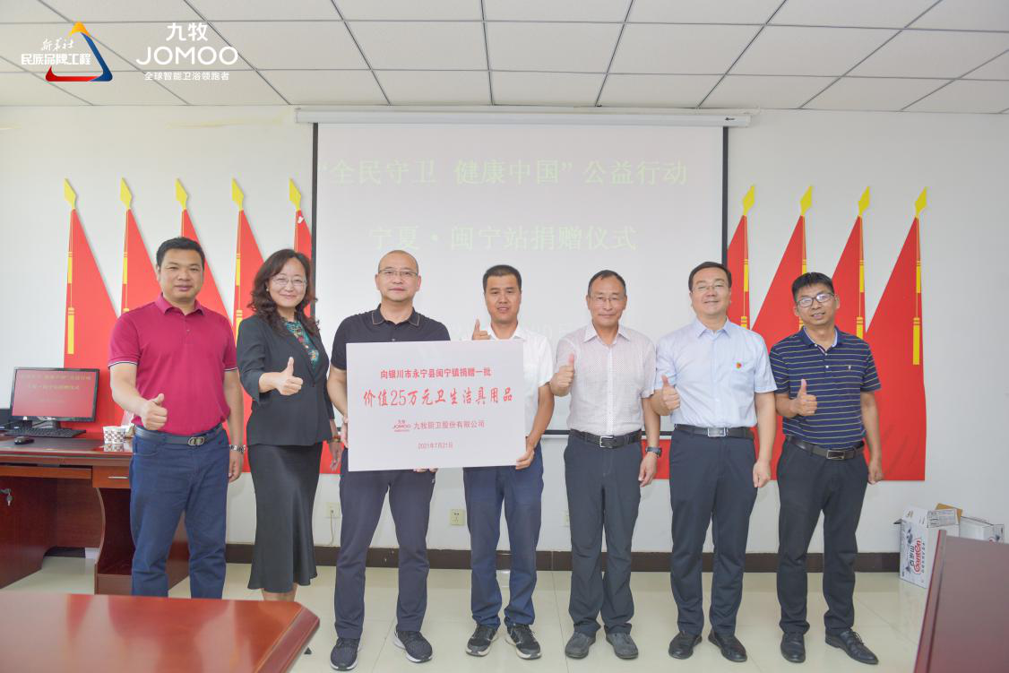 捐赠仪式现场,新华社宁夏分社党组成员、纪检组长高宁生表示,很高兴与大家相聚在闽宁,在建党百年之际以一场关注民众健康、推动健康中国战略落地的公益行动致敬这片伟大的土地和英雄的人民、献礼建党百年,这是一件非常有意义的事情。九牧集团作为具有很强社会责任感的民族企业,也一直活跃在卫生领域公益第一线。为了向全社会宣传普及卫生健康知识,扎实推进健康中国建设,落实国家“厕所革命”,去年新华社民族品牌工程办公室与九牧集团发起了“全民守卫·健康中国”公益行动。今天活动来到闽宁,共同助力“健康闽宁”,饱含着对闽宁人民拼搏精神的深情厚意,充分体现了民族品牌的家国情怀和社会担当。