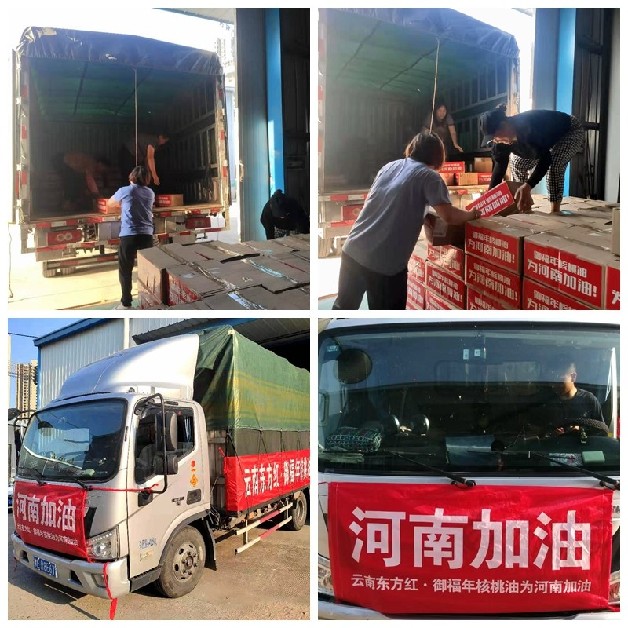 一方有难,八方支援。云南东方红迅速成立“御福年核桃油为河南加油”专项工作小组,发起动员,紧急协调内外部资源,盘点、确定可调配物资,组织驰援。救灾物资现已抵达河南鹤壁和安阳两个洪涝受灾地区。