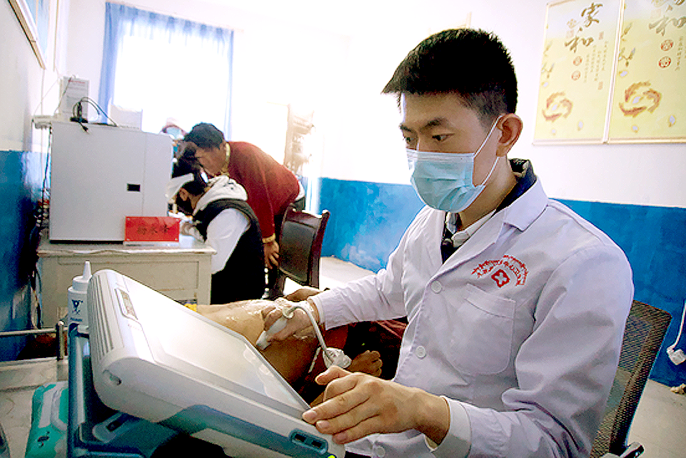 白玉乡上空一朵巨大的蘑菇云遮住了太阳刺眼的光,微风也带走了些许燥热。“授人以鱼不如授人以渔”,从超声仪会诊室走出来,杨永峰深吸一口气,迎着藏族同胞的目光走向义诊室。