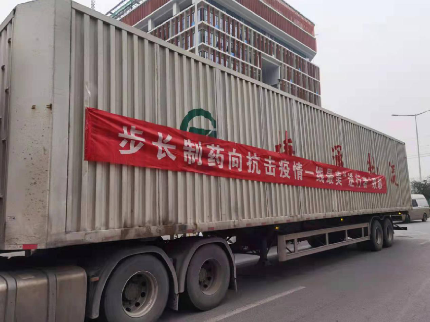 12月30日,满载着步长制药支援西安抗疫物资的爱心专车从山东菏泽山东步长医药销售公司驶出,31日中午十一点到达西安。