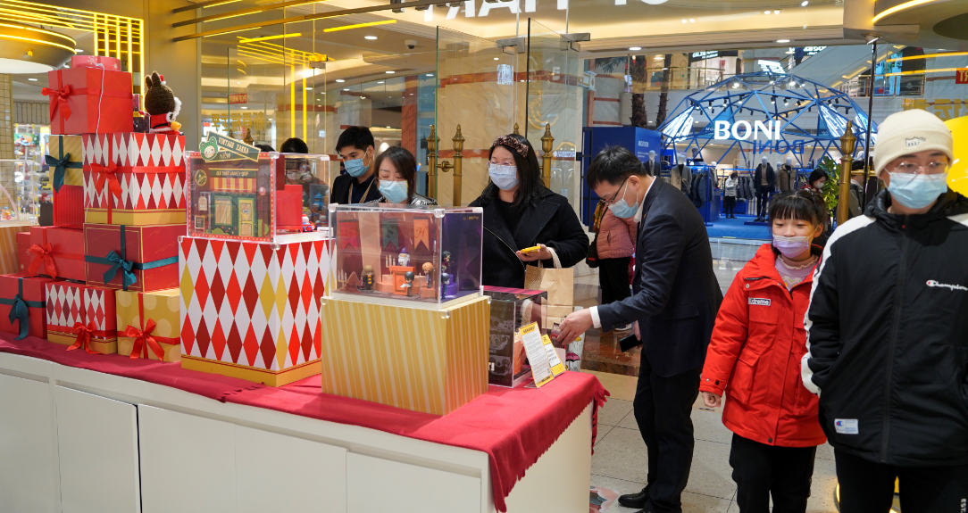 在一家潮玩店前,年轻顾客络绎不绝。手办收藏达人小金正对着店里几个新品犹豫不决。他说:“环球港的好几个潮玩店,在粉圈有着很高的人气,新品上架很快。55小时太长了,让我们这些死忠粉都快产生报复性消费了。”在这些网红店内,服务人员在整理货架,提供服务的同时,也一直紧绷防疫优先的弦,看到顾客未戴口罩都会上前热心提醒。
