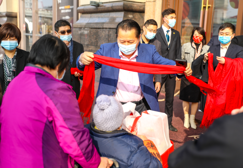 10点整,上海环球港商场正式开门营业。丁佐宏为进场的顾客们逐个送上暖心的红围巾和防疫礼包,引起了阵阵热烈的掌声。虽然客流多,但是环球港保持着井然的秩序,各入口都设置了测温区,并提示顾客佩戴口罩,查验绿色健康码后,方可进入。