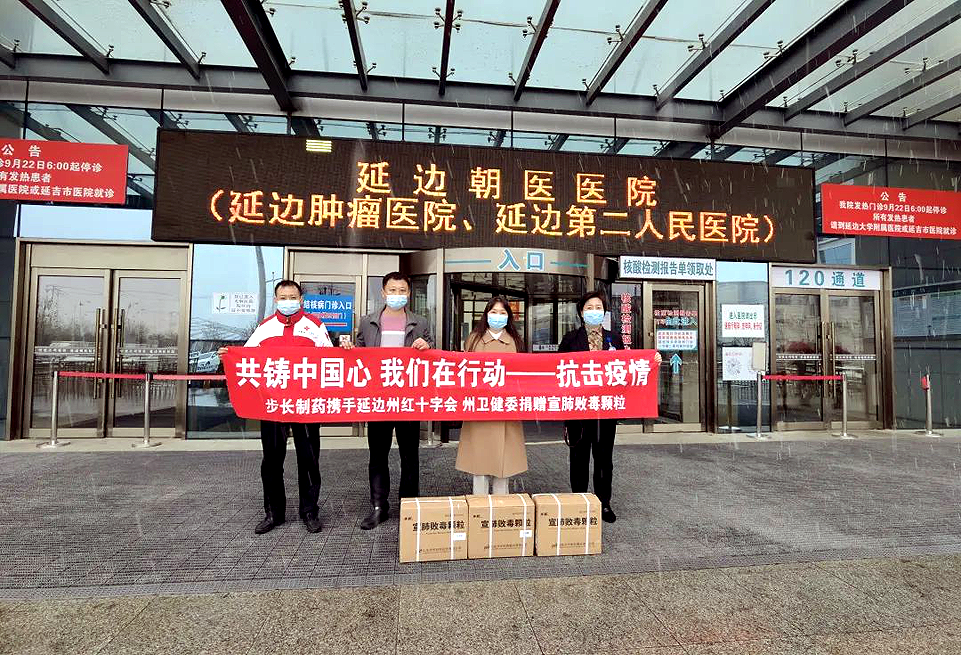 2022年3月14日,步长制药携手延边州红十字会、延边州卫健委捐赠1800盒防治新冠肺炎药品“宣肺败毒颗粒”,助力疫情防控工作。