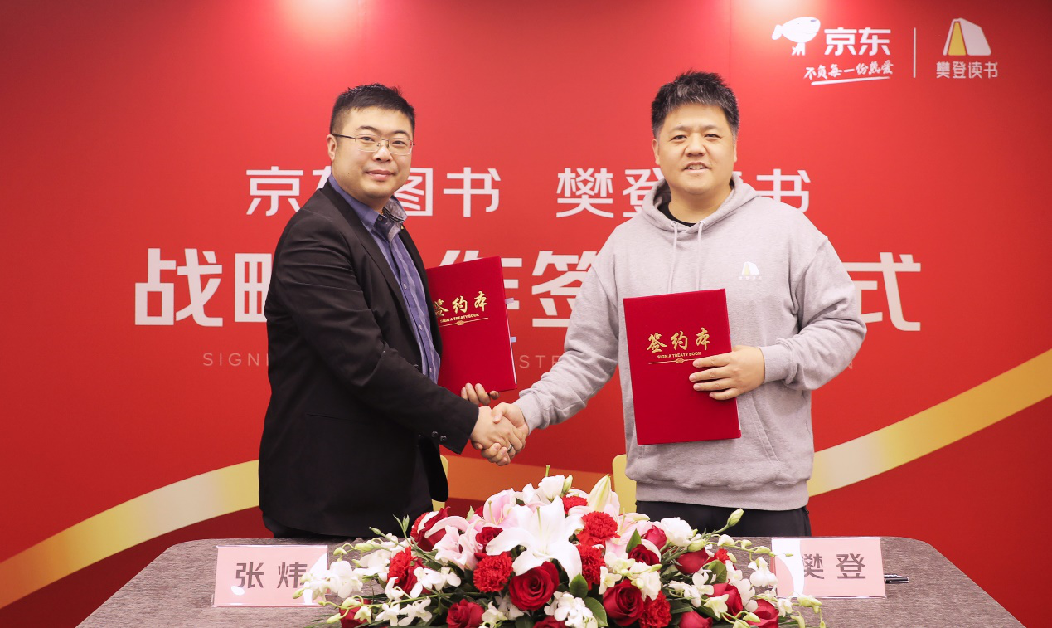 4月7日,京东图书与樊登读书在京签署战略合作协定,京东图书文教业务部负责人张炜与樊登读书APP首席内容官、创始人樊登出席了签约仪式。签约结束后,樊登首次作为京东图书战略合作伙伴进行直播荐书。在三个半小时的时间内,共有63万书友参与了直播,实现了战略签约的开门红。