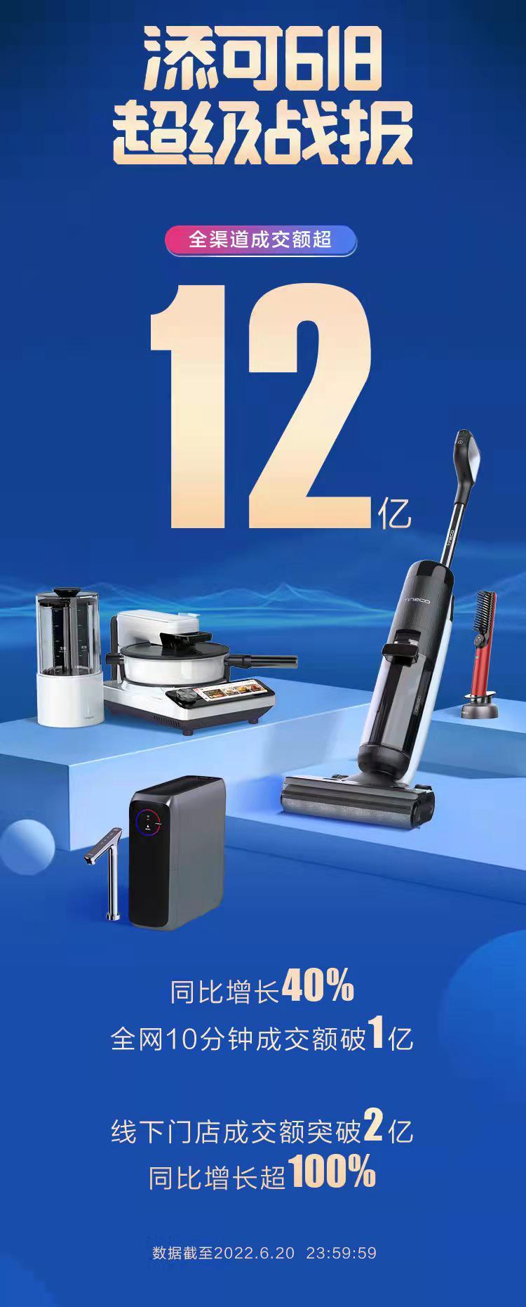 上半年即将结束,618成为各大品牌上半年冲击业绩的最后一次机会。在激烈的竞争态势下,高端智能家电品牌添可成绩亮眼。618首日,添可线上成交额突破4亿,销售额同比增长41%。正式开售仅10分钟,即破1亿元。截止到6月20日,添可全渠道销售额已突破12亿,同比增长40%。线下门店成交额突破2亿,同比增长超100%。