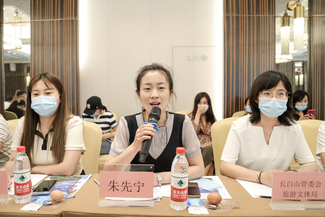 哈尔滨市文广旅局对长白山旅游和文化体育局一行的到来表示欢迎。推介会在一段动感的长白山文旅宣传片中拉开帷幕。长白山全域旅游发展有限公司、长白山旅游股份有限公司、长白山势佳体育旅游发展有限公司、长白山传奇文化发展股份有限公司、长白山讷殷小镇集团、长白山鲁能胜地度假区、长白山旅游协会等相关负责人依次详细介绍了各自的文旅产品。今年暑期,红心向党——长白山上的红色记忆游、“车船睡”、圣山祈福助金榜题名、旅居康养走进长白山、“长相守到白头”浪漫旅拍、神山圣水疗养度假等网红文旅产品,吸引了当地旅行商的关注。全新的产品不仅特色多元,更有力串联了两地旅游线路的延伸。不仅如此,围绕当下文旅市场,长白山推出了微定制、自由行系列文旅产品,为旅行商散客定制化、自驾、私人小包团等业务提供了更多组合。