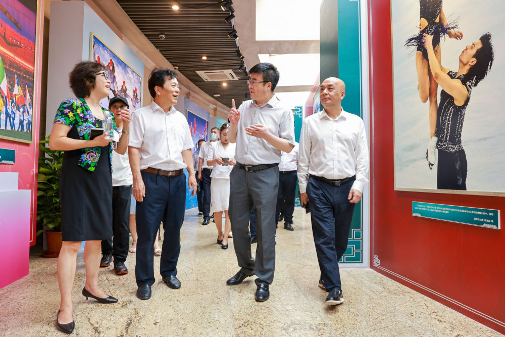 新华社副社长袁炳忠,国家体育总局相关领导,中国第一位滑雪冠军单兆鉴,中国滑冰协会主席、北京冬奥会中国速滑队总教练李琰,北京冬奥会速滑金牌得主高亭宇出席开幕仪式。新华社副社长袁炳忠表示,“一起向未来——新华社双奥主题图片展”通过新华社记者拍摄的精彩图片,向世界展现阳光、富强、开放、充满希望的中国,展现奥运精神和文化。